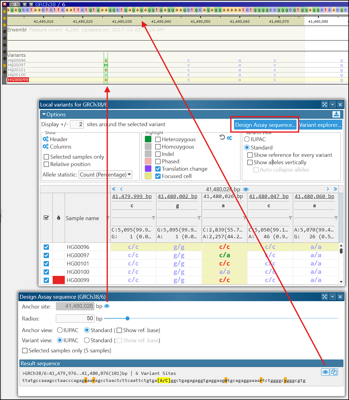 If you design an assay targeting a specific allele, it is important to know the genomic sequence neighborhood. A new addition to the Local variants interface will allow users to export flanking sequences around the selected variant. The extracted sequence can be formatted differently and typically will use IUPAC codes for variant sites in the flanking sequence while splitting the alleles of the ‘anchor’: