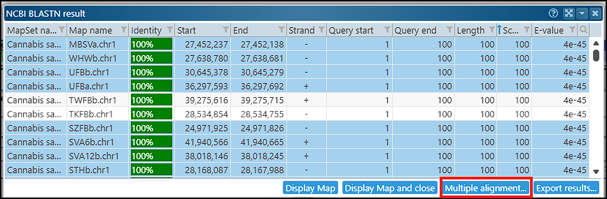 We have added a helpful enhancement to the BLASTN results form: the subject sequences for each HSP can be included in the multiple alignment interface. For instance, you can select a region of interest and use its sequence as a BLASTN query to find similar sequences in other closely related genomes. From the list of results, choose the matching sequences to be used in the multiple alignment for identifying sequence variation. The query sequence will be automatically added to the list. The consensus sequence and the ratio of conservation are shown at the top of the alignment interface. This, for example, may help you with primer design when the probe sequence should target conserved regions.