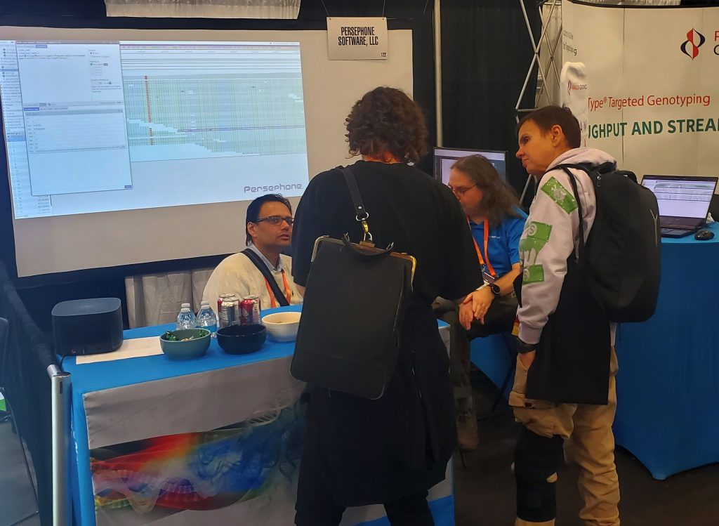 We had a great time at the Plant and Animal Genome Conference in San Diego. Our exhibit booth and workshop drew strong interest, and it was a pleasant surprise to see several speakers highlight Persephone in their scientific presentations, which brought additional traffic our way. Visitors to the booth shared positive feedback and offered numerous ideas for future development. Many attendees specifically noted the application’s speed and intuitive design. As you may know, our web portal is free to use, and many researchers can generate meaningful results directly through our hosted instance. If a user’s preferred genomes are not yet available, they can easily upload them to their private workspace. Once a genome and its associated tracks are added, the system automatically generates a statistical summary of sequences and features, enables BLAST searches, and supports real‑time comparative genomics.